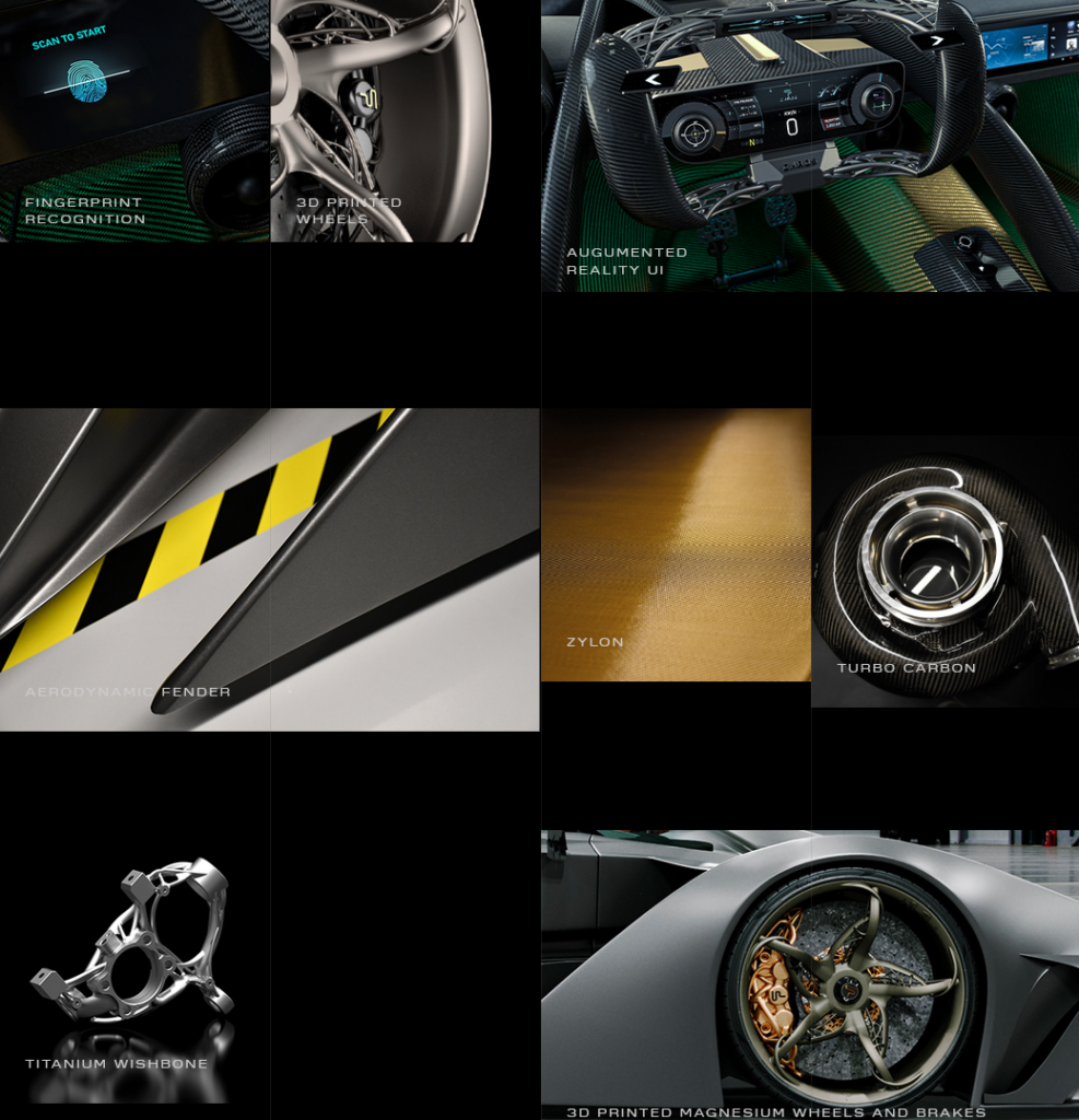 What’s also striking about both variants, is the exterior and interior design elements. All of them scream “expensive and cool.” Zylon, titaniun, NASA-grade carbon fiber, 3D printed Magnesium wheels, you name it.